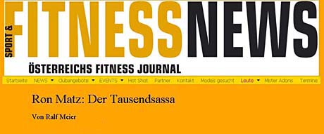 Ich habe in den letzten 25 Jahren unzählige Spitzen-Bodybuilder kennengelernt, aber nur wenige, die soviel Aufmerksamkeit erregt haben. Das liegt sicher daran, dass Ron genau in die Zeit platzte, in der Bodybuilder das höchste Ansehen genossen und auf breite Akzeptanz gestoßen sind. Es hat aber noch mehr mit der Person Matz zu tun, denn schließlich gab es außer ihm noch zahlreiche andere Bodybuilder, die kaum wahrgenommen wurden. Ron musste sich bei seinen öffentlichen Auftritten nie allein auf seine Muskeln verlassen. Bei seinen zahlreichen Reisen ins Ausland sammelte er schon dadurch Punkte, dass er sich oftmals fließend in der Landes- sprache unterhalten konnte. Bei Parties, die zu verkrampfen drohten, griff er auch schon mal selbst zur Gitarre, um für Stimmung zu sorgen. Seine Zeit als aktiver Bodybuilder liegt nun schon einige Jahre zurück. Doch in der Öffentlichkeit steht Ron noch immer. Heute arbeitet er als Schauspieler und Synchronsprecher. So hat er eine Doku über den Karneval in Kuba gedreht, in dem Bühnenstück "Robin Hood" und zahlreichen Fernsehserien und TV-Spots mitgewirkt. Auch bei seiner zweiten Karriere hat er nichts dm Zufall überlassen, sondern eine knallharte Ausbildung durchlaufen, die ihn u.a. in das berühmte "Actors Studio" von Lee Strasberg führte, wo schon Robert deNiro und Al Pacino ihr Handwerk erlernten. Viel Zeit widmet er auch seiner Band Upsurd, mit der er vor allem Rockabilly und Blues, aber auch Bluesrock spielt. Daneben entsteht gerade ein Glamrock-Projekt, das die wilden 70er Jahre wieder aufleben lässt.